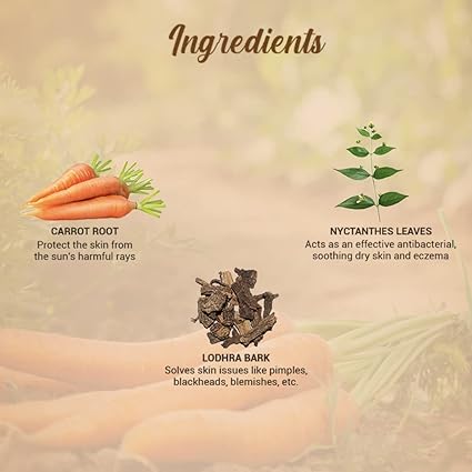 - Key Ingredients : Carrot, Lodhra Bark, Sprouted Wheat Germ
