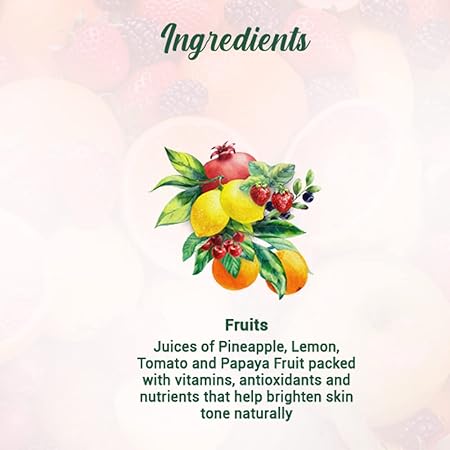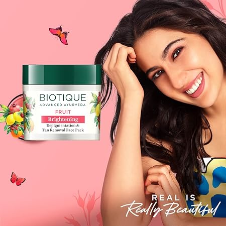 - Key Ingredients: The Biotique face pack is a brightening blend of natural fruit extracts. It contains the goodness of pineapple, tomato, lime, and papaya, which soothes the skin, brightens it, prevents pigmentation, and gives the skin a youthful glow.