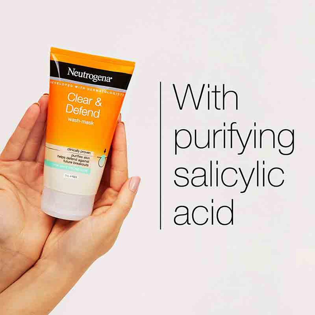 Buy Neutrogena Clear & Defend Wash-Mask 150ml online from Cellsii.com. Developed with dermatologists for spot-prone skin, Neutrogena Clear & Defend Wash-Mask is clinically proven to help defend against new breakouts. This oil-free formula, with kaolin white clay and salicylic acid, works as both a face wash and face mask to deeply cleanse and remove impurities while respecting skin's balance.