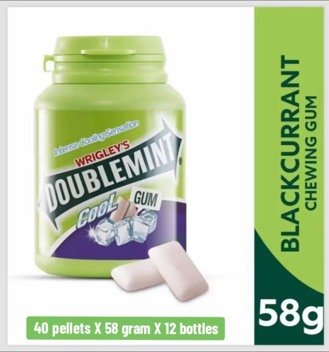 ব্ল্যাকক্রান্টের শীতল স্বাদে, ডাবলমিন্ট এখন বোতলের ফর্ম্যাটে আসে যাতে ভাগ করা সহজ, চুইংগামের পেলেট রয়েছে
